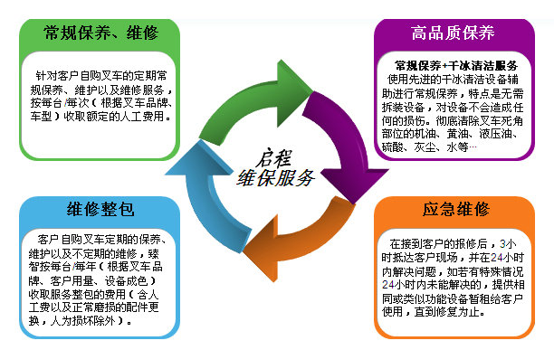 叉車的售后回租業(yè)務(wù)是“啟程公司”租賃業(yè)務(wù)和服務(wù)整包兩者為一體的獨創(chuàng)型的租賃服務(wù)模式。“啟程公司”與“客戶公司”簽訂現(xiàn)有叉車的回購協(xié)議,“客戶公司”將現(xiàn)有的叉車出售給“啟程公司”,實現(xiàn)固定資產(chǎn)所有權(quán)轉(zhuǎn)移!皢⒊坦尽毕韧ㄟ^專業(yè)的服務(wù)團隊進行叉車的大修、翻新、優(yōu)化,更換配件等一系列工作后,使叉車配置達到最佳狀態(tài)。再與“客戶公司”以該批叉車為基礎(chǔ)簽訂叉車租賃合同,“客戶公司”完全把繁瑣的叉車維保服務(wù)等交予“啟程公司”實現(xiàn)服務(wù)包。