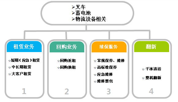 租賃業(yè)務(wù)包括:新叉車、高品質(zhì)返流叉車、叉車電瓶的長期租賃、旺季時的短期租賃、應(yīng)急時的臨時租賃、先租后買、以租代售等。全系列的物流設(shè)備包含叉車蓄電池以及叉車從1.5噸-10噸,倉儲叉車,電動叉車,柴油叉車等,短期租賃可以按天,周,月計算。