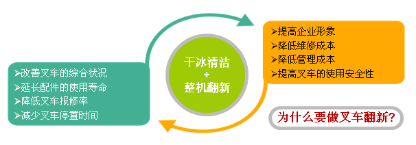 通過干冰清洗機做全面清潔保養(yǎng)工作,能有效的改善叉車的綜合狀況、延長配件的使用壽命,降低叉車報修率,從而減少叉車停置時間,增加連續(xù)使用時間,增加叉車的使用率,同時提高叉車的使用安全性,避免由安全隱患帶來的不必要的損失。
